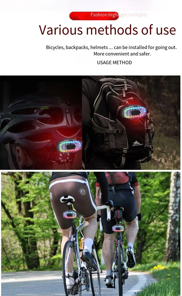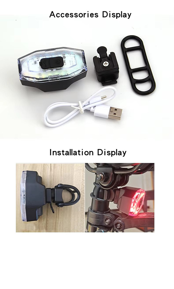 New USB Rechargeable LED Bicycle Tail Light ABS Customizable Colors Waterproof Warning Lights for Mountain Bikes
