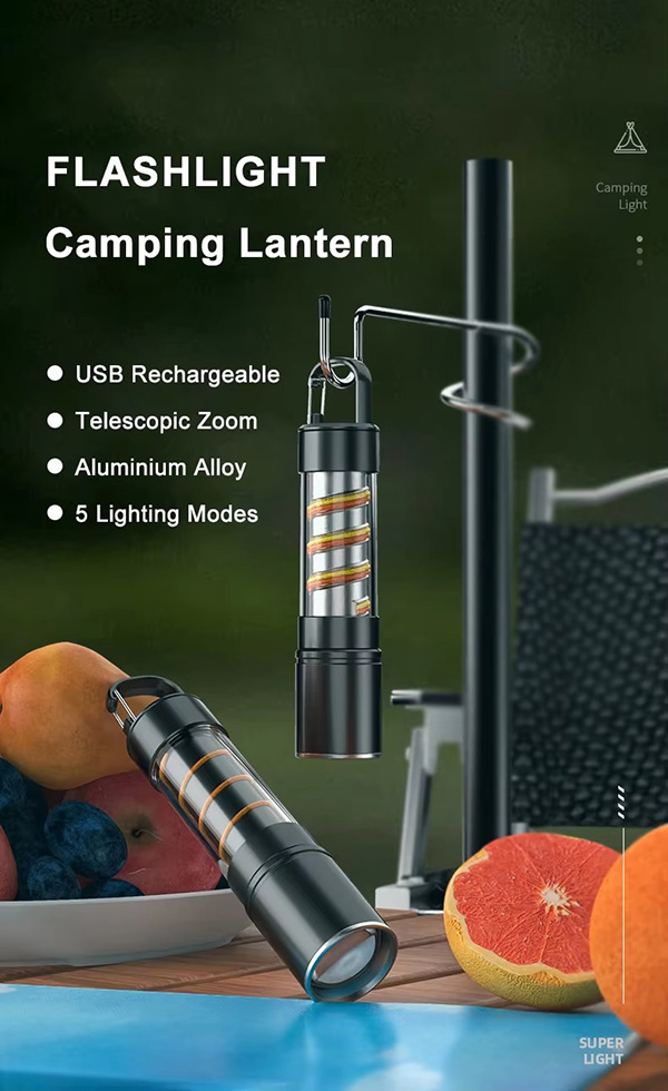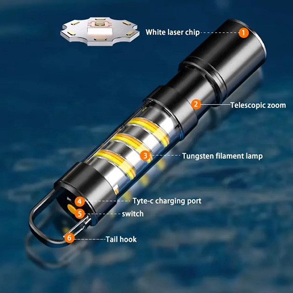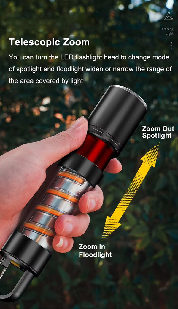 EF-3807AL Super Bright White Laser Multi-Function Rechargeable Tactical Flashlight Long Life Portable for Outdoor & Indoor Use with Atmosphere Soft LED strip Type-C function