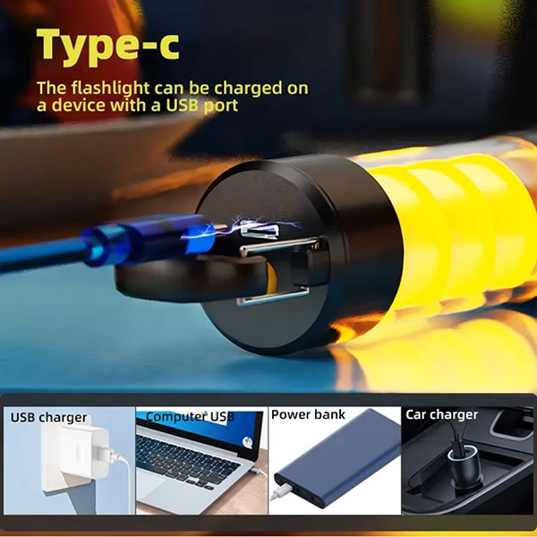 Super Bright White Laser Multi-Function Rechargeable Tactical Flashlight Long Life Portable for Outdoor & Indoor Use with Atmosphere Soft LED strip Type-C function