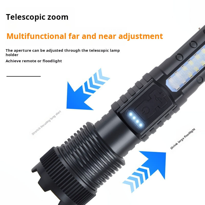 Strong Light Telescopic Zoom Flashlight Pen Clip Red Blue Burst Flash Flashlight