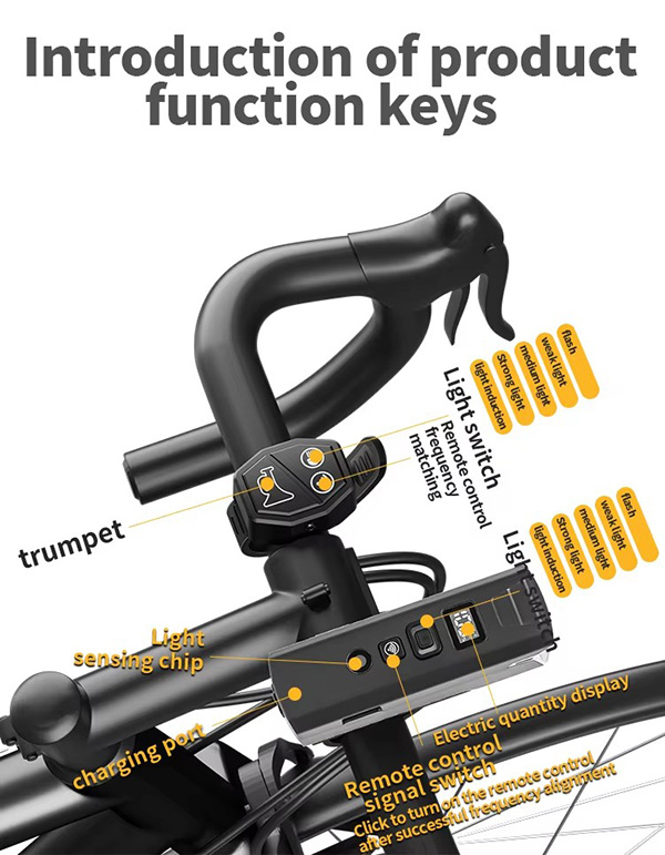 OEM Night Sensor Power Display Bike Light Road Mountain Bike Super Bright Lamp Rechargeable Riding light with Trumpet