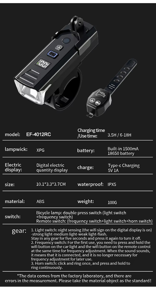 EF-4012RC OEM Night Sensor Power Display Bike Light Road Mountain Bike Super Bright Lamp Rechargeable Riding light with Trumpet